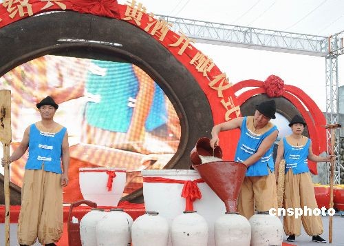 11月7日,2008中國(guó)紹興黃酒節(jié)在浙江紹興舉行。紹興是黃酒之鄉(xiāng),也是全球黃酒生產(chǎn)量最大的城市。目前全市有黃酒企業(yè)86家,年產(chǎn)量達(dá)到41.3萬噸、年銷售額33.2億元,分別占全國(guó)的17.2%和35.6%。紹興黃酒行業(yè)擁有7個(gè)中國(guó)馳名商標(biāo)、4只中國(guó)名牌產(chǎn)品和6家中華老字號(hào)。今天展示的15家“紹興黃酒”冠名企業(yè),是其中的佼佼者,他們的總產(chǎn)量和銷售收入占據(jù)全市的90%。黃酒節(jié)期間,紹興將舉辦黃酒展覽會(huì)、黃酒開釀儀式,酒類趣味活動(dòng),黃酒品牌推廣文藝活動(dòng),黃酒品嘗活動(dòng)以及院士紹興行和一系列經(jīng)貿(mào)文化活動(dòng)等。中新社發(fā) 袁云 攝