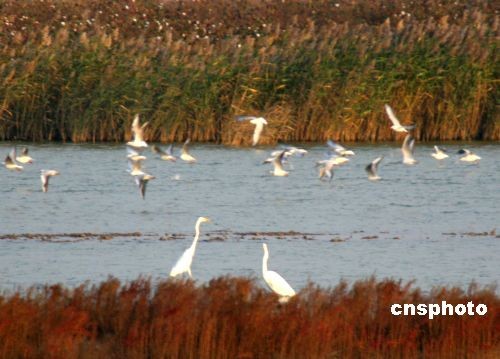11月9日,一群候鳥(niǎo)在連云港臨洪濕地上盤(pán)旋、覓食。隨著生態(tài)環(huán)境的日益改善,江蘇連云港成為多種候鳥(niǎo)理想的越冬之地,來(lái)此越冬的候鳥(niǎo)逐年增多。目前,面積達(dá)116平方公里的臨洪濕地保護(hù)工作已經(jīng)啟動(dòng),連云港市將把臨洪河口濕地打造成集濱海濕地、城市濕地、農(nóng)耕濕地、文化濕地于一身的城市中央濕地公園。中新社發(fā) 耿玉和 攝