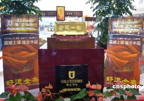2008年11月10日,一根重達(dá)100公斤的大金條在北京菜百商場亮相。據(jù)悉,這根入選上海大世界基尼斯紀(jì)錄的金條歷時半年制作而成,如此重的身價在貴金屬制造史上堪稱“金條王”。中新社發(fā) 玉龍 攝