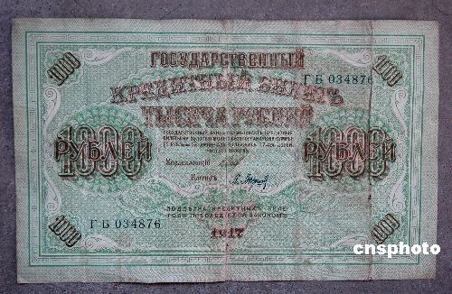11月9日,一張1917年的俄國盧布現(xiàn)身山東濱州無棣。該盧布面值1000元,長(zhǎng)21.3cm、寬13.2cm,票面上的字母已有些黯淡。