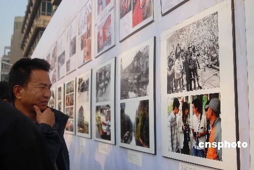 208年11月14日,時(shí)尚30年圖片展在杭州開幕,30多幅黑白老照片讓眾多市民回憶起小時(shí)候的生活場(chǎng)景,同時(shí)大學(xué)生也著各時(shí)代的時(shí)裝前來(lái)捧場(chǎng)。中新社發(fā) 引煒 攝