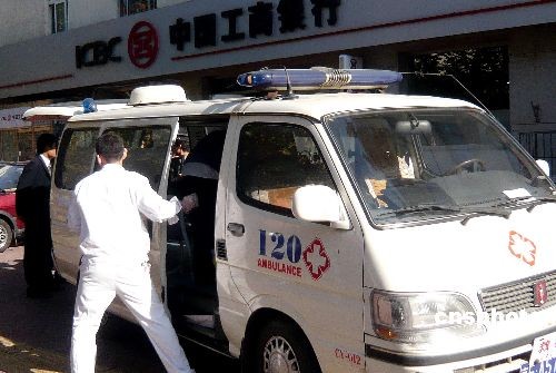 11月15日中午,北京一家工商銀行一位正在辦理個人業(yè)務(wù)的老人突然昏迷休克倒地,銀行工作人員立即呼叫120救護車前來進行搶救。中新社發(fā) 錢興強 攝