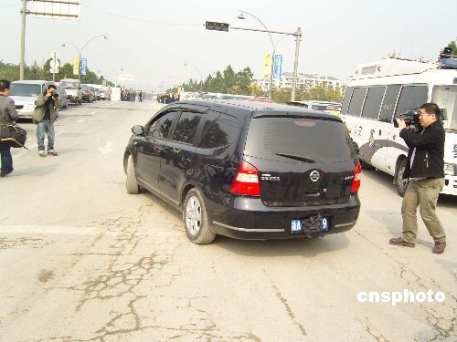 一輛黑色的商務(wù)車載著第五位遇難者尸體的車輛緩緩駛出事故現(xiàn)場(chǎng)。中新社發(fā) 姜越潮 王磊 攝