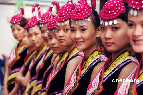 十一月十七日,一家座落于畬族地區(qū)、業(yè)界知名度頗高的茶企業(yè),請(qǐng)來一群美貌畬族姑娘在福建武夷山“第二屆海峽兩岸茶業(yè)博覽會(huì)”展覽館里出任企業(yè)產(chǎn)品形象大使,亦為茶博會(huì)增添了一道亮麗的風(fēng)景線。中新社發(fā) 鄭祚聲 攝