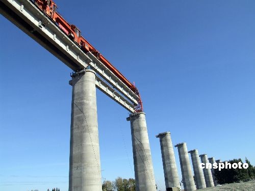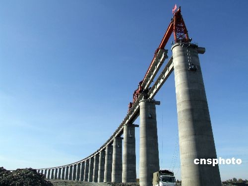 11月中旬,新建北疆鐵路奎北段奎屯河特大橋勝利架通。該橋全長6.9公里,共需架梁209孔,這也是迄今新疆境內(nèi)鐵路的第一長橋。 建成后將填補(bǔ)北疆地區(qū)空白,是我國連接中西亞和歐洲鐵路運(yùn)輸大通道的重要組成部分。 又由于克拉瑪依是我國目前惟一不通鐵路的石油基地,也是在建的西北最大的石化基地。北疆鐵路奎北段的盡快修通,對克拉瑪依在今后幾年能夠迅速形成更大的煉油加工能力至關(guān)重要,同時對新疆早日成為我國石油工業(yè)最為現(xiàn)實的戰(zhàn)略接替區(qū)也非常關(guān)鍵。中新社發(fā) 杜芳棟 攝