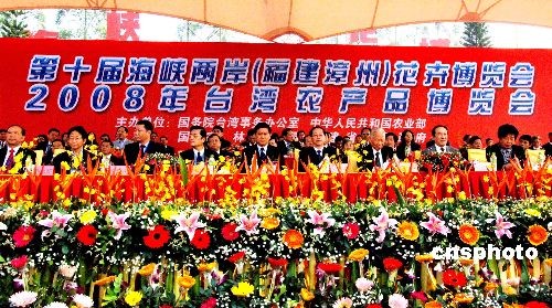 十一月十八日,以“花開兩岸 合作雙贏”為主題,第十屆海峽兩岸(福建漳州)花卉博覽會在福建漳州花博園隆重開幕。全國人大常委會副委員長、民盟中央主席蔣樹聲,十屆全國政協(xié)副主席張克輝,福建省政協(xié)主席梁綺萍,農(nóng)業(yè)部副部長危朝安,全國人大常委會委員、民盟中央副主席索麗生,福建省委常委、常務副省長張昌平,中國國民黨副秘書長張榮恭等來自兩岸三地、海內外嘉賓近三千人出席本屆海峽兩岸花卉博覽會開幕式。中新社發(fā) 劉可耕 攝
