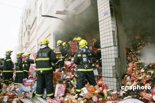 11月19日中午11點(diǎn)45分許,四川省廣安市 “康師傅”方便面廣安地區(qū)總代理的倉庫里價(jià)值60多萬的貨物被無情大火燒掉大半。事發(fā)后,廣安區(qū)公安分局110巡警大隊(duì)、市區(qū)消防大隊(duì)第一時(shí)間趕到現(xiàn)場(chǎng),開展了滅火工作。據(jù)了解,失火的兩個(gè)門市面積大約有100平方米,里面裝了60多萬元的貨物,這次損失至少達(dá)40萬元左右。火災(zāi)原因正在調(diào)查之中。中新社發(fā) 廣宣 攝
