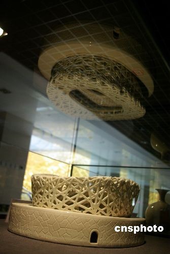 11月19日,陶瓷“鳥巢”作品亮相北京中華民族藝術(shù)珍品博物館。中新社發(fā) 九州 攝