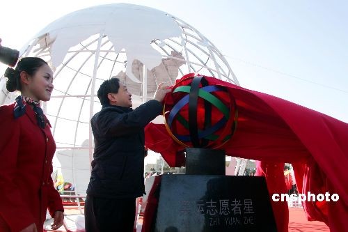 12月5日,北京奧運(yùn)會(huì)后的首個(gè)國際志愿者日,奧運(yùn)志愿者星正式揭幕。 為表彰志愿者為北京奧運(yùn)會(huì)、殘奧會(huì)的成功舉辦作出的突出貢獻(xiàn),激勵(lì)更多人士加入志愿服務(wù)行列,經(jīng)國際天文學(xué)聯(lián)合會(huì)小天體命名委員會(huì)批準(zhǔn),國際永久編號第18639號小行星被命名為“奧運(yùn)志愿者星”。中新社發(fā) 富田 攝