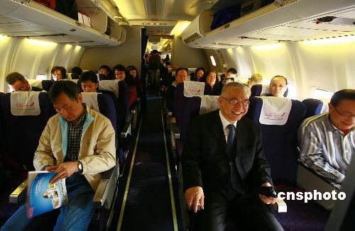 圖為飛行旅途中,臺(tái)胞乘客心情頗佳,其樂融融。