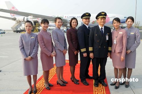 圖為華航班機(jī)機(jī)組人員亮相深圳機(jī)場(chǎng)。