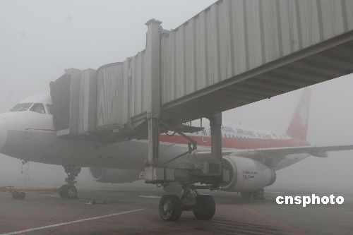 成都雙流國際機場12月16日再度遭受濃霧天氣襲擊,機場被迫關(guān)閉3個多小時,直接造成109個進出港航班延誤,其中出港74個,進港35個,并使18個出港航班被迫取消,導致近1萬名出港旅客受阻于機場,不能按時飛往目的地。雙流機場及時向全場發(fā)布了二級預警信號。中新社發(fā) 呂俊明 攝