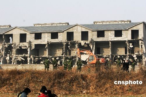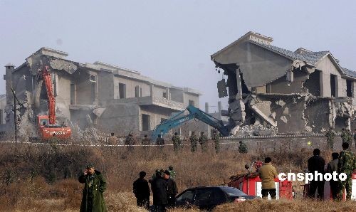 12月17日上午,備受社會(huì)關(guān)注的河南洛陽龍門石窟西山違法別墅群被當(dāng)?shù)卣畯?qiáng)制拆除。近日,國內(nèi)部分媒體公開報(bào)道了河南洛陽龍門石窟所在的龍門西山出現(xiàn)29棟違法別墅群的情況。洛陽市委、市政府高度重視,立即成立調(diào)查組迅速查處,認(rèn)定該別墅群屬違法建筑物,依法予以強(qiáng)制拆除。中新社發(fā) 張曉理 攝
