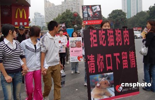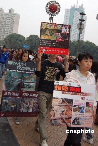 12月21日,廣西南寧部分愛(ài)貓人士在街頭舉牌宣傳,號(hào)召民眾“拒吃貓、狗肉”,并呼吁官方出臺(tái)反虐待動(dòng)物法。中新社發(fā) 劉萬(wàn)強(qiáng) 攝