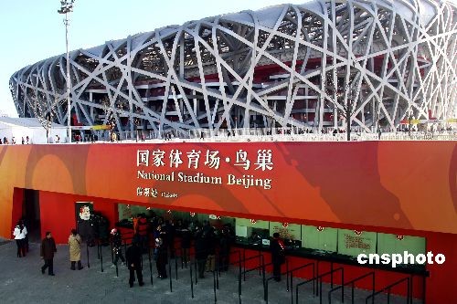 12月25日,國家體育場(chǎng)“鳥巢”新的售票檢票系統(tǒng)開始啟用。原臨時(shí)售票處將被設(shè)立在場(chǎng)館西北側(cè)的永久售票處取代,驗(yàn)票方式由手工檢票變?yōu)樽詣?dòng)驗(yàn)票,而驗(yàn)票口仍為場(chǎng)館的“K”、“L”口。工作人員表示,“鳥巢”的出口仍為“B”、“C”口,將根據(jù)客流量決定是否增開其他出口。圖為鳥巢新設(shè)立的永久售票處。中新社發(fā) 富田 攝