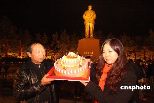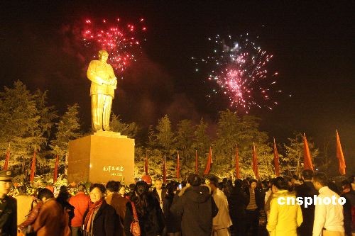 12月26日凌晨,在韶山毛澤東廣場(chǎng),許多民眾從全國(guó)各地趕來(lái)用各種方式紀(jì)念毛澤東誕辰115周年。據(jù)悉,紀(jì)念活動(dòng)將會(huì)從零時(shí)起一直持續(xù)到清晨。中新社發(fā) 郭國(guó)權(quán) 攝