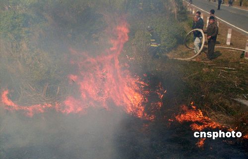 1月9日12點(diǎn)30分左右,廣西欽州市境內(nèi)一輛卡車突然起火,隨后引燃附近近千畝甘蔗林。欽州消防部門迅速趕到現(xiàn)場滅火,2個(gè)小時(shí)后大火被撲滅,事故無人員傷亡。中新社發(fā) 劉富強(qiáng) 攝