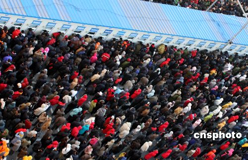 1月12日,北京西站售票廣場(chǎng)聚滿了排隊(duì)購(gòu)票的旅客。春運(yùn)進(jìn)入第2天,北京西站迎來購(gòu)票高峰。 中新社發(fā) 吳芒子 攝