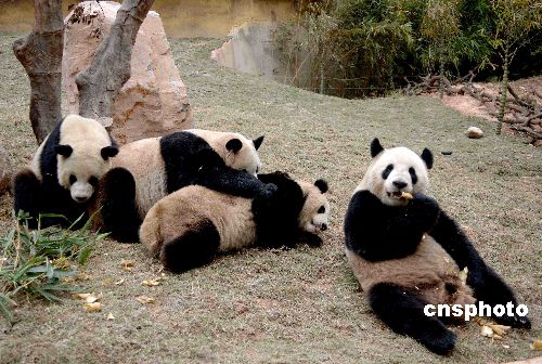 1月23日,廣州香江野生動(dòng)物世界又一力作——長(zhǎng)隆大熊貓中心順利落成并投入使用。十只大熊貓喬遷新居,大熊貓?jiān)谛戮拥氖彝饣顒?dòng)場(chǎng)地歡樂嬉戲。中新社發(fā) 劉衛(wèi)勇 攝