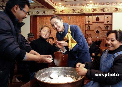 藏歷新年前夕,在中國國際航空公司擔任國際航線空姐職務的德慶央宗專程從北京帶著父母趕回拉薩,和親朋好友歡度藏歷新年。德慶央宗的父親曾供職于中國《民族畫報》,母親供職于中國藏學研究中心,他們一家已經(jīng)多年沒有回西藏過藏歷新年。中新社發(fā) 廖攀 攝