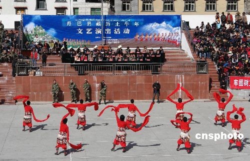 四川甘孜州丹巴縣藏族民眾,在藏歷新年期間身著盛裝,載歌載舞,歡慶新年。中新社發(fā) 安斗阿布 攝