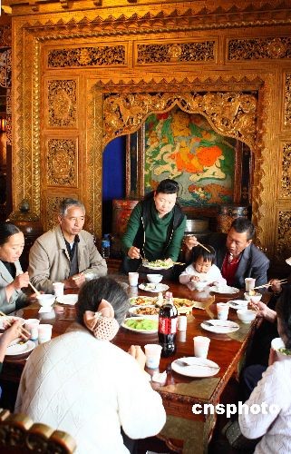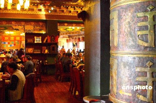 隨著在昆明定居的藏族民眾越來(lái)越多,獨(dú)具特色的藏族飲食也越來(lái)越受到昆明市民的喜愛,酥油茶、青稞酒和牦牛肉這些來(lái)自藏區(qū)的綠色食品更是受到熱捧。圖為藏歷新年期間,昆明最有名的“瑪吉阿米香格里拉風(fēng)情宮”藏式餐廳人滿為患,昆明市民紛紛到此感受藏歷新年的別樣風(fēng)情。中新社發(fā) 劉冉陽(yáng) 攝