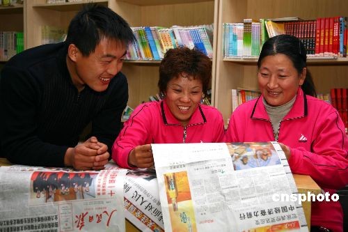 3月7日,北京市懷柔區(qū)雁棲鎮(zhèn)陳各莊村村民正在村中“益民書(shū)屋”閱讀“全國(guó)兩會(huì)”專題報(bào)道內(nèi)容。全國(guó)“兩會(huì)”召開(kāi)以來(lái),京郊農(nóng)民十分關(guān)注特別是有關(guān)“三農(nóng)”議題,黨中央關(guān)于“三農(nóng)”的有關(guān)新政策,極大的鼓舞了京郊農(nóng)民艱苦創(chuàng)業(yè)的勇氣,堅(jiān)定了農(nóng)民勤勞致富奔小康的信心。中新社發(fā) 卜向東 攝