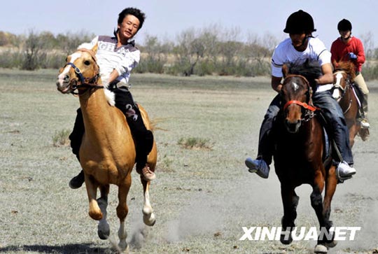 5月9日,“汗血寶馬”龍頭在新疆五家渠市精彩亮相。2003年從中亞引進(jìn)的龍頭是匹6歲公馬,身姿矯健優(yōu)美,毛色金黃,四蹄雪白,是新疆唯一的一匹“汗血寶馬”!昂寡獙汃R”本名阿哈爾捷金馬,產(chǎn)于土庫(kù)曼斯坦科佩特山脈和卡拉庫(kù)姆沙漠間的阿哈爾綠洲,是世界上最古老的馬種之一,目前全世界共存“汗血寶馬”近3000匹,其中約2000匹在土庫(kù)曼斯坦。趙戈 攝