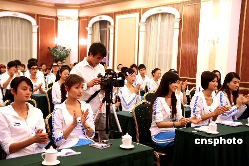 2007年11月14日,進(jìn)入第十三屆中國模特之星大賽全國決賽的30名男模和30名女模抵達(dá)南寧。主辦方廣西電視臺《時尚中國》當(dāng)晚舉行選手見面會。廣西電視臺副臺長林杰謀,大賽總導(dǎo)演彭勇,《時尚中國》制片何海林分別給選手鼓勵和提出要求。模特們11月15-22日將在南寧進(jìn)行魔鬼訓(xùn)練,11月23、24、25日進(jìn)行三場決賽直播。中新社發(fā) 駱文剛 攝