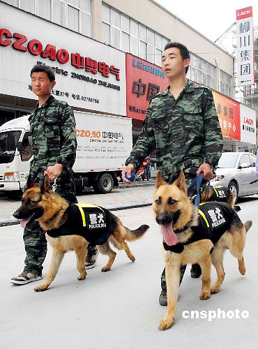 近日,浙江溫州市樂(lè)清公安局首次將警犬投入到社會(huì)治安管理中。首批4條警犬分為兩組:一組負(fù)責(zé)樂(lè)清柳市車站周邊的巡邏,另一組配合警方設(shè)卡和對(duì)可疑人員的追蹤、圍堵。2009年4月份,樂(lè)清警方專門成立了警犬基地,由保安公司負(fù)責(zé)飼養(yǎng)與日常管理。目前,警犬基地已從南京軍區(qū)購(gòu)買20只警犬,每只身價(jià)都在萬(wàn)元以上,多為體型強(qiáng)壯勻稱、勇敢無(wú)畏的德國(guó)牧羊犬。據(jù)介紹,這20只護(hù)衛(wèi)犬主要用于溫州樂(lè)清的警戒、巡邏等,其中4只首批受訓(xùn)成功投入使用。中新社發(fā) 許勛磊 攝