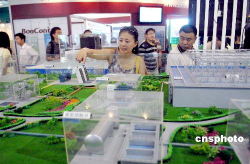 6月3日,以“節(jié)能減排 和諧發(fā)展”為主題的第十一屆中國(guó)國(guó)際環(huán)保展在北京國(guó)展中心開(kāi)幕。近600家中外企業(yè)帶來(lái)最新的環(huán)保技術(shù)裝備參加了本次展會(huì)。各種污染防治技術(shù)、清潔能源及資源綜合利用仍是本次展會(huì)眾人討論的熱點(diǎn)話題。中新社發(fā) 遠(yuǎn)舟 攝