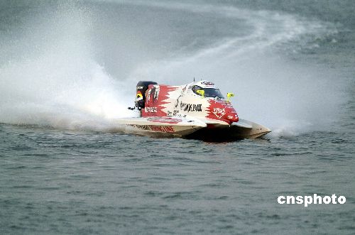 10月20日,2007F1摩托艇世錦賽中國深圳大獎(jiǎng)賽在深圳南山后海開賽。目前排名2007賽季積分榜首位的薩米·瑟里奧繼續(xù)表現(xiàn)神勇,兩輪排位賽結(jié)束后,以單圈36.66秒的最好成績位列第一;高迪奧·卡佩里尼緊隨其后,以36.81秒的成績屈居第二。按照國際慣例,當(dāng)天下午進(jìn)行的是排位賽和桿位賽,比賽吸引了數(shù)萬觀眾到場觀看。中新社發(fā) 吳峻 攝