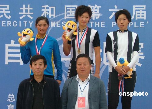 十月二十三日,第六屆城市運(yùn)動會自行車場地賽在河南洛陽新區(qū)體育中心開賽,女子三公里個人追逐賽冠軍被煙臺市隊的姜帆(中)奪得,北京順義隊的王翠、煙臺隊的姜吻吻分獲二、三名。中新社發(fā) 史寶銀 攝