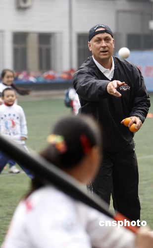 10月30日,入選棒球名人堂的前美國職業(yè)棒球運(yùn)動員卡爾·瑞普金在北京西單小學(xué)教小學(xué)生打棒球。這是他以美國國務(wù)院派遣的美國公共外交特使的身份進(jìn)行的首次出訪。瑞普金將訪問北京、上海和廣州,在這三個城市中,瑞普金將與青少年進(jìn)行接觸,相互進(jìn)行文化交流,同時為更多的新手講解棒球運(yùn)動?·瑞普金是棒球運(yùn)動有史以來空前的鐵人紀(jì)錄保持者,也是美國棒球名人堂成員之一。他是棒球史上僅有的取得400次本壘打和擊中3000次的八位知名球員之一。2007年7月29日,他以史上最高得票數(shù)入選美國棒球名人堂。 中新社發(fā) 杜洋 攝