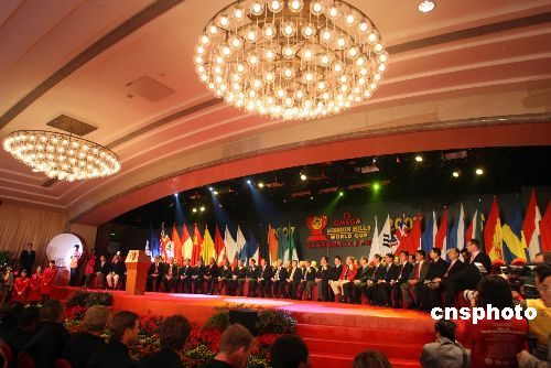 十一月二十一日,二〇〇七歐米茄觀瀾湖高爾夫世界杯開幕式在深圳觀瀾湖東莞會所舉行,來自二十八個國家五十六名球手齊聚觀瀾湖展開高爾夫世界杯的角逐。中新社發(fā) 陳文 攝