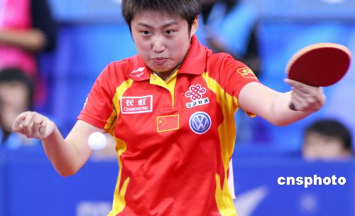 12月14日,2007年國際乒聯(lián)職業(yè)巡回賽總決賽女單首輪,頭號種子郭躍在先失一局的情況下連扳4局淘汰日本選手福原愛,昂首晉級八強(qiáng)。中新社發(fā) 富田 攝