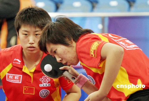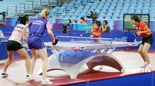 12月18日,奧運測試賽乒乓球女團比賽揭幕。第三場進行的是雙打比賽,中國隊派出郭躍/李曉霞這對雙打組合,而歐洲聯(lián)隊一方則是鮑羅斯和孫禎琦的組合,雖然首局在拿到局點的情況下被對手以12比10逆轉,但郭躍和李曉霞調整心態(tài)的速度非?,她們以11比7,11比5和11比2連下三局,以3比1戰(zhàn)勝鮑羅斯/孫禎琦,從而使得中國女隊以3比0輕取歐洲聯(lián)隊,取得本次邀請賽的開門紅。中新社發(fā) 博芽影像 攝