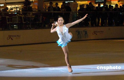 香港花樣滑冰代表隊(duì)運(yùn)動(dòng)員小野珠實(shí)在授旗儀式后作表演。