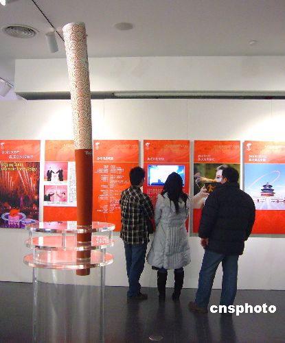 12月22日,《點(diǎn)燃大眾激情 傳遞奧運(yùn)夢想》2008年奧運(yùn)火炬接力主題展在北京東方廣場開幕,展覽以繪畫、實(shí)物、多媒體等形式介紹了奧運(yùn)火炬的發(fā)展歷程,并通過圖文結(jié)合展示了2008年奧運(yùn)會(huì)火炬?zhèn)鬟f路線等信息。中新社發(fā) 玉龍 攝
