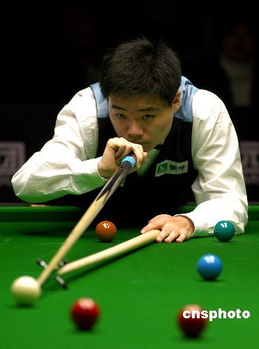 12月29日,2007中國(guó)職業(yè)斯諾克巡回賽“遠(yuǎn)東杯”總決賽繼續(xù)在江蘇宜興體育中心進(jìn)行。在剛剛結(jié)束的一場(chǎng)丁俊暉與李行1/4決賽中,丁俊暉5:4戰(zhàn)勝李行,晉級(jí)四強(qiáng)。中新社發(fā) 劉建民 攝