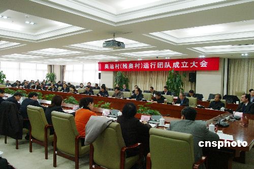 1月10日,北京奧運會奧運村(殘奧村)運行團(tuán)隊成立大會在北京奧運大廈舉行。北京奧組委主席劉淇,北京奧組委第一副主席陳至立等領(lǐng)導(dǎo)出席大會。中新社發(fā) 富田 攝