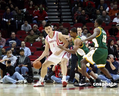 火箭1月21日在主場迎來兩連勝,姚明發(fā)揮出色,全場獲得30分17個籃板另有四個封蓋。中新社發(fā) 楊晉生 攝