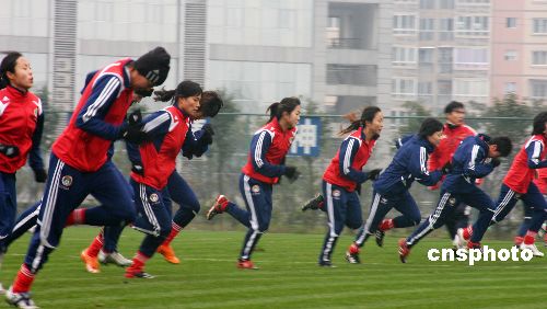 2月14日上午,中國女足的28名隊員在主教練伊麗莎白、領隊張建強的率領下,來到重慶文理學院足球訓練場進行角球、破門等技戰(zhàn)術訓練。中新社發(fā) 陳仕川 攝