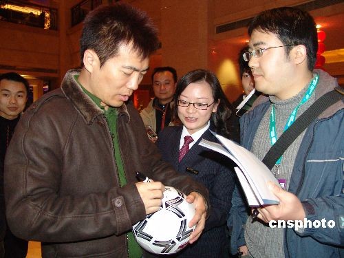 2月17日晚,著名足球解說員黃健翔在永川球迷的簇擁下從重慶江北機場抵達下塌的永川名豪國際酒店,受到媒體記者及球迷的歡迎。據(jù)了解,黃健翔回故鄉(xiāng)永川,是為了參加2008東亞女足錦標賽決賽和回老家祭祖。中新社發(fā) 陳仕川 攝