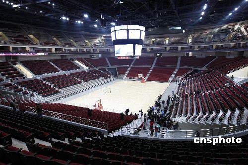 2月19日,北京五棵松2008年北京奧運會籃球館比賽區(qū)。據(jù)工作人員介紹,作為奧運會籃球比賽場館,也是亞洲第一座NBA風(fēng)格的體育館,這座場館出自休斯敦火箭主場設(shè)計師之手,完全按照NBA的設(shè)計進行改造。整個體育館內(nèi)共有18700個席位,包括2500個貴賓席、9600個底層座位和48個包廂,座椅的設(shè)計都采用NBA式的軟座,看臺上的過道窄而多,這一點與火箭的豐田中心非常相似。比賽期間,場館內(nèi)還設(shè)有兩個餐廳以及商鋪,這一點都和NBA的球場無異。不僅場地、座椅是NBA風(fēng)格的,就連場館包廂前的走廊走向,都與NBA場館非常相似。球場將在4月份迎來“好運北京”的測試賽,這也將是體育館內(nèi)的首次比賽。中新社發(fā) 杜洋 攝