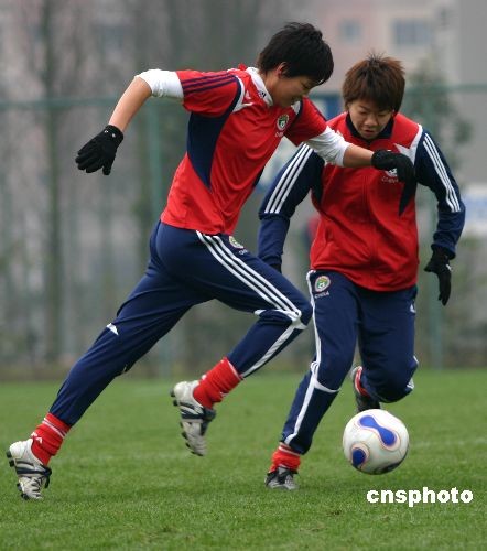 2月20日上午,中國女足的姑娘們?cè)谥鹘叹氁聋惿讕ьI(lǐng)下,來到重慶文理學(xué)院足球訓(xùn)練場進(jìn)行有針對(duì)性的賽前對(duì)抗訓(xùn)練,她們21日晚將迎戰(zhàn)東亞四強(qiáng)賽上實(shí)力最強(qiáng)勁的對(duì)手朝鮮隊(duì)。中新社發(fā) 陳仕川 攝