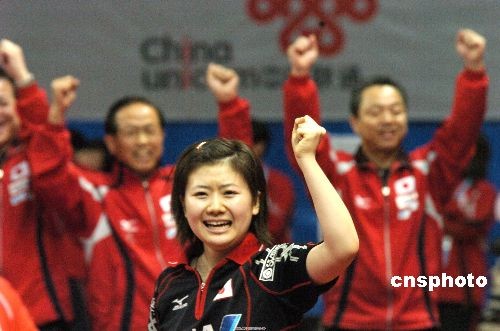 圖:世乒賽福原愛幫助日本隊(duì)?wèi)?zhàn)勝韓國隊(duì)