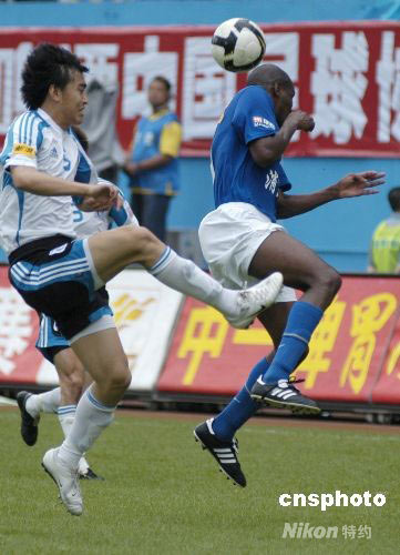 5月10日下午15點35分,2008中超聯(lián)賽第七輪比賽,廣州醫(yī)藥隊迎戰(zhàn)大連海昌賽,在廣州越秀山體育場舉行。比賽吸引了2萬多名球迷到現(xiàn)場為廣藥隊助威,廣州醫(yī)藥在比賽中充分發(fā)揮出球隊水平,憑借迪亞哥、拉米雷斯、吳坪楓三人上下半場的3個入球,主場3-0戰(zhàn)勝八冠王大連海昌,豪取三連勝。中新社發(fā) 譚允 攝