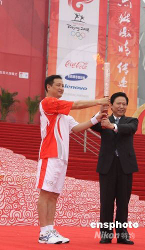 圖:奧運(yùn)火炬在南京傳遞