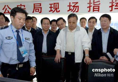 2008年5月28日,北京奧運安保協(xié)調(diào)小組組長,公安部黨委副書記,副部長劉京來到沈陽足球分賽區(qū)視察奧運安保工作。劉京先后到沈陽奧體中心五里河體育場、沈陽萬豪酒店等地檢查了沈陽奧運安保工作。中新社發(fā) zhangpeng 攝